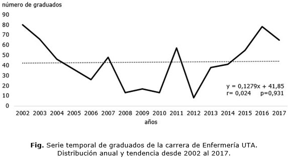 A pesar del discreto incremento en el número de graduados, la carrera de Enfermería de la UTA ha respondido a su encargo social en cuanto a la formación de talento humano que en mayor medida se ha desempeñado en el sector público. Las asignaturas que más aportaron a la formación de los graduados se correspondieron con las principales áreas de trabajo que ha demandado el mercado laboral. La carrera ha diseñado programas de posgrado que están acorde a las necesidades planteadas por los graduados en función del mercado laboral.