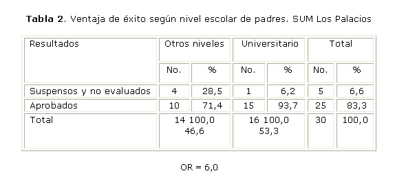 En el contexto de la universalización, donde el proceso docente es centrado en el estudiante, el tener padres universitarios, indudablemente es una gran ayuda para jóvenes que se encuentren estudiando una carrera, por el nivel de comprensión para las tareas del joven, la ayuda en la búsqueda de información etc., como se aprecia en la tabla 2. La diversidad de las fuentes de ingreso y de las situaciones educativas que pueden darse, hace que los profesores aprovechen los variados recursos disponibles, incluyendo las TICs para personalizar la acción docente8,9 y esto provoca que los estudiantes recaben el apoyo incluso de su entorno familiar, para resolver las diferentes tareas orientadas. En Cuba, dados los avances alcanzados en la Educación son pocos los padres que no están preparados para enfrentar cualquier problema de los hijos en su paso por la universidad, pero el momento actual, de la era del conocimiento y el desarrollo de las TICs, exige en los ciudadanos nuevas competencias personales, sociales y profesionales para poder enfrentar los rápidos avances de la ciencia según refiere Viamonte Fernández E.8