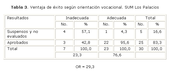 inadecuada orientación vocacional, fue 29,3 veces más propenso