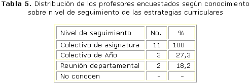 En la tabla 5 donde se expresa el nivel de seguimiento de